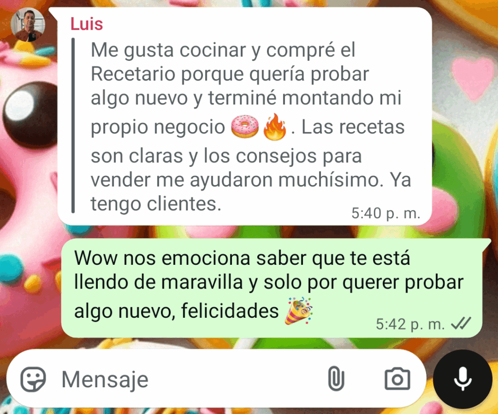 Con nuestro recetario completo de donitas tendrás más de 200 recetas fáciles, deliciosas y probadas para vender y generar ingresos extra desde casa.